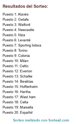 Resultados del sorteo: