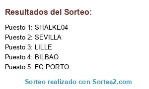 Lista de participantes: BETIS, BAYERN, JUVENTUS, CHELSEA, AT.MADRID, PSG, ARSENAL, MAN.UNITED, SHALKE04, CITY, VALENCIA, GALATASARAY, ACMILAN, RAYO, FC PORTO, REAL MADRID, ROMA, PALERMO, INTER, BILBAO, MALAGA, CELTIC, LILLE, BARÇA, MINEIRO, SEVILLA, .