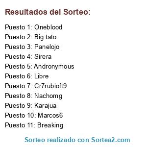 Lista de participantes: Marcos6, Oneblood, Nachomg, Cr7rubioft9, Libre, Panelojo, Karajua, Breaking, Sirera, Andronymous, Big tato.