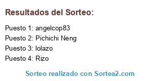 Lista de participantes: Rizo, angelcop83, lolazo, Pichichi Neng.