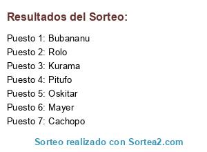 Lista de participantes: Bubananu, Cachopo, Kurama, Mayer, Oskitar, Pitufo, Rolo.