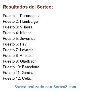 Resultados del sorteo: