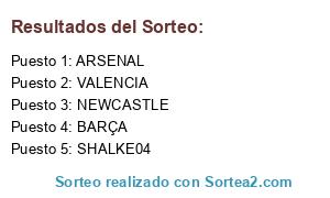 Lista de participantes: VALENCIA, NEWCASTLE, ARSENAL, SHALKE04, PSG, INTER, BILBAO , RAYO, BARÇA.