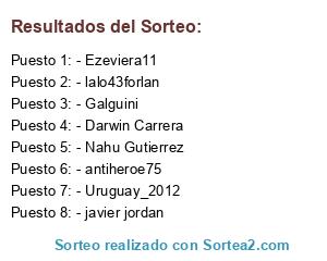 Lista de participantes: - Uruguay_2012, - Darwin Carrera, - Nahu Gutierrez, - Galguini, - lalo43forlan, - Ezeviera11, - antiheroe75, - javier jordan.