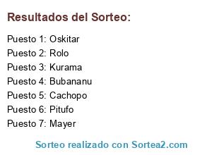 Lista de participantes: Bubananu, Cachopo, Kurama, Mayer, Oskitar, Pitufo, Rolo.