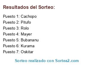 Lista de participantes: Bubananu, Cachopo, Kurama, Mayer, Oskitar, Pitufo, Rolo.