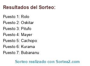 Lista de participantes: Bubananu, Cachopo, Kurama, Mayer, Oskitar, Pitufo, Rolo.