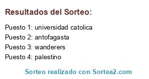 Lista de participantes: colo colo, huachipato, union española, o'higgins, universidad catolica, palestino, wanderers , cobresal, univeridad de concepcion, audax italiano, antofagasta, cobreloa.