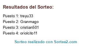 Lista de participantes: oriolcito11, Granmago, treyu33, cristian501.