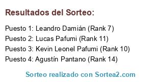 Lista de participantes: Leandro Damián (Rank 7), Kevin Leonel Pafumi (Rank 10), Lucas Pafumi (Rank 11), Agustín Pantano (Rank 14).