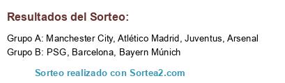 Lista de participantes: Manchester City, Bayern Múnich, Arsenal, Barcelona, Juventus, Atlético Madrid, PSG.