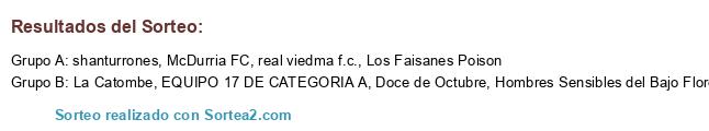 Lista de participantes: shanturrones, Los Faisanes Poison, Doce de Octubre, Hombres Sensibles del Bajo Flores, real viedma f.c., McDurria FC, La Catombe, EQUIPO 17 DE CATEGORIA A.