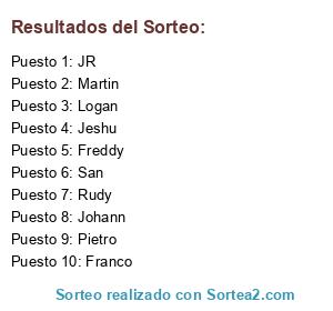Lista de participantes: Logan, Pietro, Rudy, Freddy, Johann, Franco, JR, Martin, Jeshu, San.