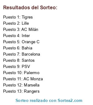 Lista de participantes: Barcelona, Marsella, AC Milán, Santos, Orange C, AC Monza, Inter, Palermo, Lille, PSV, Tigres, Rangers, Bahia.