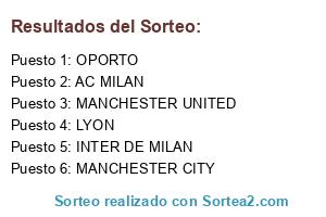 Lista de participantes: AC MILAN, INTER DE MILAN, BAYERN MUNICH, ARSENAL, LYON, OPORTO, VILLARREAL, REAL MADRID, FC BARCELONA, MANCHESTER CITY, MANCHESTER UNITED, CHELSEA.