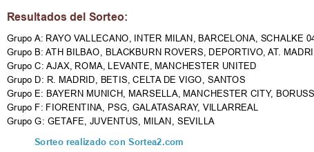 GRUPOS CHAMPIONS LEAGUE