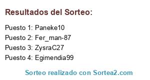 Lista de participantes: Paneke10, Fer_man-87, Egimendia99, ZysraC27.