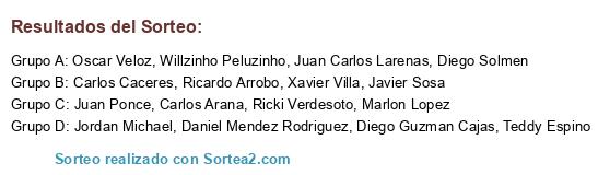 Lista de participantes: Juan Carlos Larenas, Daniel Mendez Rodriguez, Diego Guzman Cajas, Xavier Villa, Oscar Veloz, Javier Sosa, Juan Ponce, Willzinho Peluzinho, Ricardo Arrobo, Carlos Arana, Diego Solmen, Carlos Caceres, Jordan Michael, Teddy Espino, Marlon Lopez, Ricki Verdesoto.