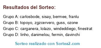 Lista de participantes: linho, fermin, carlosbode, guss, danimelou, finestrat, bermee, sisay, ozone, windeddiego, davinchi, carganera, franlu, lolazo, topoyo, zgzcervero.