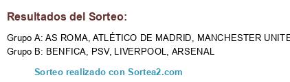 Lista de participantes: PSV, ARSENAL, MANCHESTER UNITED, BENFICA, ATLÉTICO DE MADRID, MALMO, LIVERPOOL, AS ROMA.