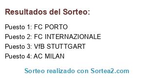 Lista de participantes: AC MILAN, VfB STUTTGART, FC INTERNAZIONALE, FC PORTO.