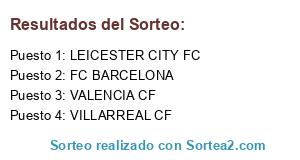 Lista de participantes: VILLARREAL CF, FC BARCELONA, LEICESTER CITY FC, VALENCIA CF.