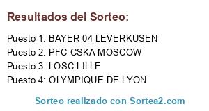Lista de participantes: PFC CSKA MOSCOW, OLYMPIQUE DE LYON, BAYER 04 LEVERKUSEN, LOSC LILLE.