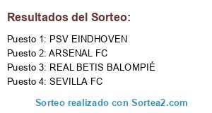 Lista de participantes: PSV EINDHOVEN, ARSENAL FC, SEVILLA FC, REAL BETIS BALOMPIÉ.