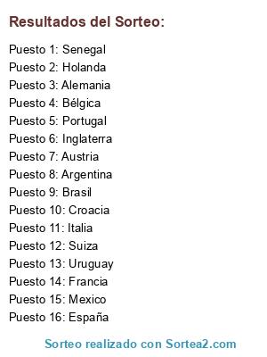 Lista de participantes: JORDI25 🇫🇷 Francia, ROMARIO 🇩🇪alemania, FRANPATANIA 🇮🇹 Italia, Eljeke 🏴 inglaterra, Jamfus Marruecos🇲🇦, Juaki Belgica 🇧🇪, Dani Argentina 🇦🇷, RaulCDSF Brasil🇧🇷, Eltirillas66 Portugal 🇵🇹, urketti46 Holanda 🇳🇱, Migue_80_.España 🇪🇸, elmanue_15 Croacia 🇭🇷, Zeulito30 Noruega 🇳🇴, Bit - uruguay 🇺🇾, pablocusan- Suiza 🇨🇭, Harper- senegal 🇬🇳, Arroyuelo (Gus) 🇨🇴 Colombia, Ceutito 🇵🇱 polonia, Makaroov69 - serbia 🇷🇸, Florenkiko - costa de marfil.