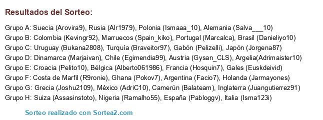 Resultados del sorteo: