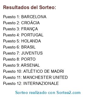 Lista de participantes: BARCELONA, BRASIL, MANCHESTER UNITED, HOLANDA, INTERNAZIONALE, FRANÇA, JUVENTUS, PORTUGAL, ARSENAL, CROÁCIA, ATLÉTICO DE MADRI, PORTO.