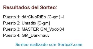 Lista de participantes: MASTER GM_Vodoi04, Shadow[C-gm], Zato - DAK , GM_Raptor, Gran Seto[SVyM] MASTER, kronnus [C-gm](A), dArCk-oRfEo (C-gm) -I, [Pr0] Bakura, Clark Evil[LSK], GM_MagicBoy, MASTER GM_Darkness, MAXIM [NOD], KAYBAJTP, A&D Minos, Shadow_atem [XPM], Apologize Drum, GM_Itachi, MASTER GM_AndyL'Arc, Unratito [C-gm], [DP] Chopper, betoduelc-gm, GM_Darkmauv, JuNk [LSK], Dark Master, [[Gods Army]]aldair uzumaki, Master_of_chaos, colossus LSK, CHEMITA-DAK [White], ShIkAmarU-DAK[White], Drkvolt - DAK, [Pr0]Hellsing, POLUX [LSK-TRUENO], GM_Raper, Geos[SVyM], squalo, DarkhackerS [RYP-NAX], Ankeal17-DAK [White], milo [SVyM], DANIELGUIZA9 [LSK], Ren [C-gm], GM_Elias, Madara uchiha, A&D Rey Mysterio, YC PAIN, Respetable, -PrO-Sasuke-Kun, MILmaster-DAK [White], Ryuken Masters [f.e.a.r], ELEMEM XPM , mago_del_caos [C-gm] , 1er. suplente, 2do. suplente.