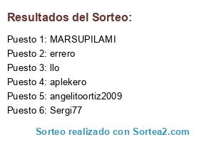 Lista de participantes: diebr, HijoDelDiablo, MARSUPILAMI, errero, angelitoortiz2009, Sage Cb., jordicule5, carlos_valverde, aplekero, llo, Sergi77.