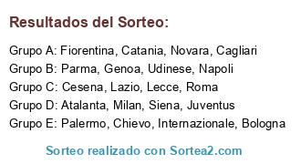 Lista de participantes: Atalanta, Bologna, Cagliari, Catania, Cesena, Chievo, Fiorentina, Genoa, Internazionale, Juventus, Lazio, Lecce, Milan, Napoli, Novara, Palermo, Parma, Roma, Siena, Udinese.