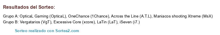 Lista de participantes: OneChance (1Chance), Vergatarios (VgT), LaTin (LaT), Excessive Core (xcore), Maniacos shooting Xtreme (MsX), iSeven (i7.), OpticaL Gaming (OpticaL), Across the Line (A.T.L).