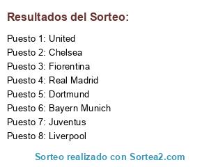 Lista de participantes: Real Madrid, Fiorentina, Bayern Munich, Juventus, Chelsea, Dortmund, Liverpool, United.