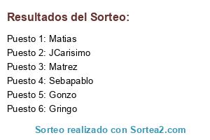 Lista de participantes: Gringo, Matrez, Gonzo, JCarisimo, Sebapablo, Matias.