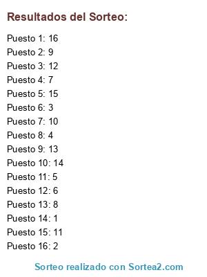 Lista de participantes: 1, 2, 3, 4, 5, 6, 7, 8, 9, 10, 11, 12, 13, 14, 15, 16.