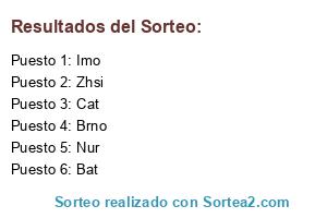 Lista de participantes: Imo, Zhsi, Brno, Nur, Bat, Cat.