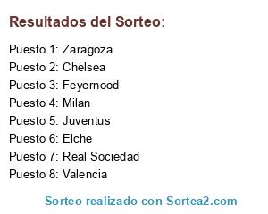 Lista de participantes: Milan, Feyernood, Elche, Juventus, Valencia, Chelsea, Zaragoza, Real Sociedad.