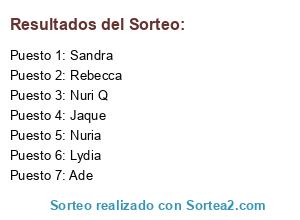 Lista de participantes: Nuria, Ade, Jaque, Lydia, Rebecca, Nuri Q, Sandra.