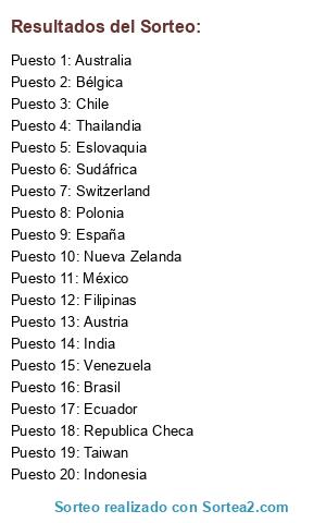 Lista de participantes: México, Chile, Ecuador, España, Venezuela, Brasil, Australia, Filipinas, India, Indonesia, Nueva Zelanda, Sudáfrica, Taiwan, Thailandia, Bélgica, Eslovaquia, Polonia, Republica Checa, Switzerland, Austria.