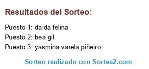 Lista de participantes: sergio fernandez rodriguez, daida felina, rosa B. estevez bustos, yasmina varela piñeiro, inma nirmala, concepcion alda lerin, veronica sanchez gonzalo, pamela petracca, bea gil, marta millan, cristina bellamy, complementos belkiara, nereida ansolot, ana cristina navarro modrego, ines limon, susana gomez rubio, elia abril, berta gimenez bescos, ana casbu, cuadros en punto de cruz y manualidades..., ma petite galgui, o bosque selva, alvaro sainz, regina luis rua.