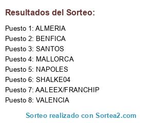Lista de participantes: BENFICA, MALLORCA, NAPOLES, SHALKE04, VALENCIA, SANTOS, ALMERIA, AALEEX/FRANCHIP.
