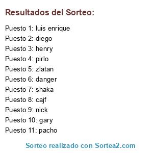 Lista de participantes: henry, zlatan, luis enrique, shaka, diego, gary, nick, cajf, pacho, pirlo, danger.