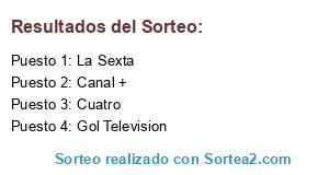 Lista de participantes: La Sexta, Canal +, Cuatro, Antena 3, Gol Television, Canal + Liga.