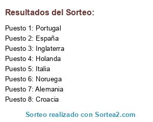 Lista de participantes: España, Holanda, Alemania, Inglaterra, Portugal, Italia, Croacia, Noruega.