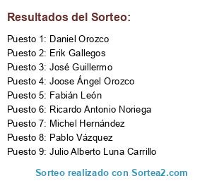 Lista de participantes: Joose Ángel Orozco, Michel Hernández, Erik Gallegos, Pablo Vázquez, Daniel Orozco, Fabián León, Ricardo Antonio Noriega, José Guillermo, Julio Alberto Luna Carrillo.