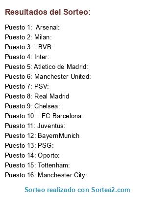 Resultados del sorteo:
