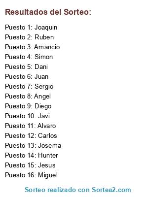 Resultados del sorteo: